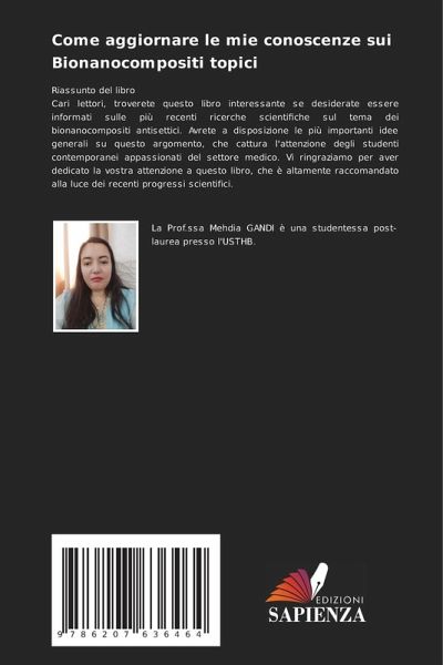 Riassunto del libroCari lettori, troverete questo libro interessante se desiderate essere informati sulle più recenti ricerche scientifiche sul tema dei bionanocompositi antisettici. Avrete a disposizione le più importanti idee generali su questo argomento, che cattura l'attenzione degli studenti contemporanei appassionati del settore medico. Vi ringraziamo per aver dedicato la vostra attenzione a questo libro, che è altamente raccomandato alla luce dei recenti progressi scientifici.
