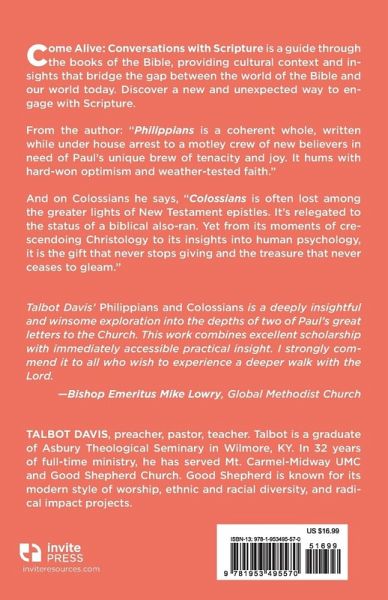 Come Alive: Conversations with Scripture is a guide through the books of the Bible, providing cultural context and insights that bridge the gap between the world of the Bible and our world today. Each book includes a daily reading, a daily insight, and a daily reading prompt that will help you reflect on the text and build the skills to read the Bible for yourself with more confidence and understanding. Discover a new and unexpected way to engage with Scripture and experience the Bible not as a distant, confusing document, but as a living, breathing conversation between God and humanity that continues to speak into our ever-changing world. Philippians is a coherent whole, written while under house arrest to a motley crew of new believers in need of Paul's unique brew of tenacity and joy. It hums with hard-won optimism and weather-tested faith. Colossians is often lost among the greater lights of New Testament epistles. It's relegated to the status of a biblical also-ran. Yet from its moments of crescendoing Christology to its insights into human psychology, it is the gift that never stops giving and the treasure that never ceases to gleam.