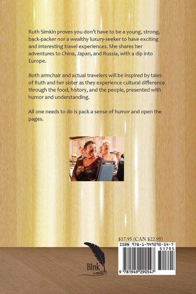 "It's a strange thing-when I travel, I seem to leave fatigue behind. There always seems to be a surge of energy for adventures. When at home, all my energy seems to go into existing, but traveling brings me a kind of freedom I can't find doing anything else." Ruth Simkin proves you don't have to be a young, strong, back-packer nor a wealthy luxury-seeker to have exciting and interesting travel experiences. She shares her adventures to China, Japan, and Russia, with a dip into Europe. Both armchair and actual travelers will be inspired by tales of Ruth and her sister as they experience cultural difference through the food, history, and the people, presented with humor and understanding. All one needs to do is pack a sense of humor and open the pages.