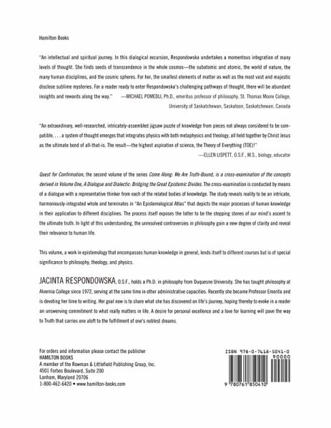 Jacinta Respondowska-born in Poland, exiled to Siberia in 1940, a refugee in 1941-42-came to the United States in 1947. A philosopher and an educator, she received her Ph.D. in philosophy from Duquesne University and has been teaching at Alvernia College (now University) since 1972. Since she received the status of Professor Emerita in 2004, she has been devoting most of her time to writing. Her goal now is to share what she has discovered on life's journey, hoping thereby to evoke in a reader an unswerving commitment to what really matters in life. A desire for personal excellence and a love for learning will pave the way to Truth that carries one aloft to the fulfillment of one's noblest dreams. She was awarded the degree of Doctor of Humane Letters in 2010. Her undertaking is a response to the calls from the learned, coming from around the globe, for a new system in philosophy in light of contemporary knowledge that would reflect reality as a synergistically integrated whole-"an interplay of the human, cosmic and Divine." The overriding purpose of the study is to expose the roots of the contemporary crises in the world with the view of reversing the devastating trends to restore the peace, order and harmony for which every human heart craves. The author's life is a superb testimony to that faith which has the power to move mountains; her system of thought, an ingenious way of leading others to the attainment of life's ultimate goal-God. Jacinta Respondowska, O.S.F., holds a Ph.D. in philosophy from Duquesne University. She has taught philosophy at Alvernia College since 1972, serving at the same time in other administrative capacities. Recently she became Professor Emerita and is devoting her time to writing.