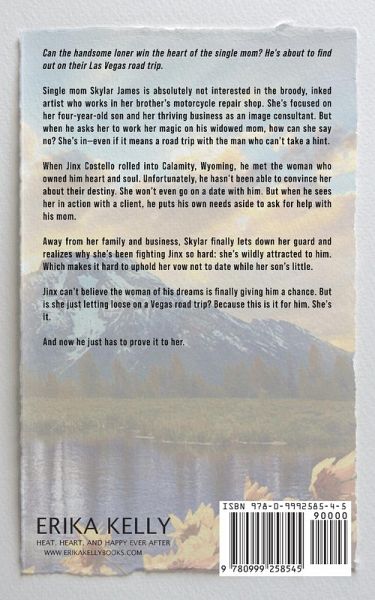 Can the handsome loner win the heart of the single mom? He's about to find out on their Vegas road trip. Single mom Skylar James is absolutely not interested in the broody, inked artist who works in her brother's motorcycle repair shop. She's focused on her four-year-old son and her thriving business as an image consultant. But when he asks her to work her magic on his widowed mom, how can she say no? She's in-even if it means a road trip with the man who can't take a hint. When Jinx Costello rolled into Calamity, Wyoming, he met the woman who owned him heart and soul. Unfortunately, he hasn't been able to convince her about their destiny. She won't even go on a date with him. But when he sees her in action with a client, he puts his own needs aside to ask for help with his mom. Away from her family and business, Skylar finally lets down her guard and realizes why she's been fighting Jinx so hard: she's wildly attracted to him. Which makes it hard to uphold her vow not to date while her son's little. Jinx can't believe the woman of his dreams is finally giving him a chance. But is she just letting loose on a Vegas road trip? Because this is it for him. She's it. And now he just has to prove it to her.
