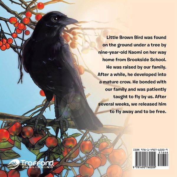 Little Brown Bird was found on the ground under a tree by nine-year-old Naomi on her way home from Brookside School. He was raised by our family. After a while, he developed into a mature crow. He bonded with our family and was patiently taught to fly by us. After several weeks, we released him to fly away and to be free.