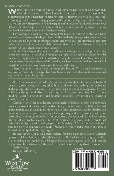 Within the divine plan for humanity, which is the Kingdom of God, everybody who calls on the name of Jesus has a place. Everyone has a part, a responsibility, an importance in His Kingdom waiting for them to discover and walk out. This truth, when engaged and followed, brings purpose and value to you. It gives precise definition to who you are according to the Lord and King of it all. It is powerful and will become your lifeblood. All this happens in a healthy small group in someone's living room that never could and never does happen on a Sunday morning. I am writing this book for two reasons. One has to do with the burden to disciple those who know Jesus to the deepest level possible, and help them give that away to others - so that they too may get the message of Jesus, and live it out. The other reason is to help leaders, at any level, to make the shift, the transition to the New Testament pattern of ministry, which is clearly small group ministry. This book is about small groups, about effective and life-giving leadership and ministry in that context. But it is also about helping good people who are stuck in a system they did not create. They just got stuck in it somewhere along the way. And now they don't know what or where they are, and most of all, who they are. I get it because I've been through it. I thought it was the right way. I was taught it was the right way. There are answers, from Scripture, from the Teacher. Yet the problem seems to continue to worsen. Let's change that. Let's learn to get much closer to the Creator and align with him as he changes that.