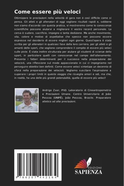 Ottimizzare le prestazioni nella velocità di gara non è così difficile come si pensa. Gli atleti e gli allenatori di oggi vogliono risultati rapidi e, sebbene non siamo d'accordo con questa pratica, vi mostreremo come le conoscenze scientifiche possono aiutarvi a migliorare il vostro record personale. La corsa è sudore, sacrificio, impegno e tanta dedizione. Ma anche movimento, vita, colore e motivo di aspettative che spesso non possono essere espresse nel desiderio di essere migliori ogni giorno. Quest'opera è stata scritta per gli allenatori in qualsiasi fase della loro carriera, per gli atleti e gli amanti dello sport, che vogliono comprendere il compito di essere più veloci sulle piste. È stata inoltre strutturata per aiutare gli studenti di scienze dello sport, in particolare quelli con conoscenze nel campo dell'allenamento. Presenta i fattori determinanti per il successo nella preparazione dei velocisti, una riflessione sul modo appassionato in cui ci impegniamo nel perseguire obiettivi ben definiti. Come essere veloci sintetizza un decennio di sforzi nella preparazione dei velocisti. Vogliamo suscitare l'aspirazione a superare i propri limiti in questo viaggio che risveglia amori e odi, ma che, in realtà, ha una delle più grandi potenzialità, quella di essere più veloci!