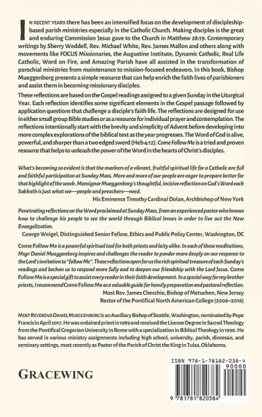 Come Follow Me is a series of exegetical reflections based on the assigned Gospel reading for the Sundays of a liturgical year. Each reflection contains insights that are explained and applied to the lived experience of a Christian disciple. Each insight section concludes with a set of questions intended to help the reader apply the various points to their practical faith lives. The primary focus of this writing is to facilitate both personal discipleship study of the Gospels as well as to promote small group discipleship discussions. This emphasis on discipleship is prepared in response to the call for New Evangelization in the Catholic Church as well as the renewed focus on scripture based faith formation at a parish level. It is a resource beneficial for parishioners, homilists, and parish ministry staff.