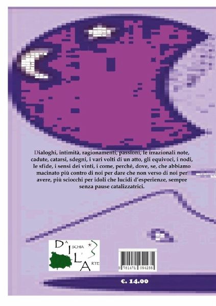 Dialoghi, intimità, ragionamenti, passioni, le irrazionali note, cadute, catarsi, sdegni, i vari volti di un atto, gli equivoci, i nodi, le sfide, i sensi dei vinti, i come, perché, dove, se, che abbiamo macinato più contro di noi per dare che non verso di noi per avere, più sciocchi per idoli che lucidi d'esperienze, sempre senza pause catalizzatrici.