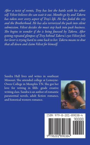 After a twist of events Troy has lost the battle with his other self. Velvet believes she can wait it out. Months go by and Takeru has taken over every aspect of Troy's life. He has fooled the city and the the Brotherhood. He has also terrorized the pack into silent submission. Velvet decides she must step back into pack business. She begins to wonder if she is being finessed by Takeru.After getting repeated glimpses of Troy behind Takeru's eyes Velvet feels her lover is trying hard to come back to her. Takeru means to shut that all down and claim Velvet for himself.