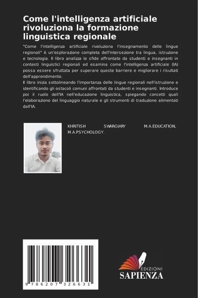 "Come l'intelligenza artificiale rivoluziona l'insegnamento delle lingue regionali" è un'esplorazione completa dell'intersezione tra lingua, istruzione e tecnologia. Il libro analizza le sfide affrontate da studenti e insegnanti in contesti linguistici regionali ed esamina come l'intelligenza artificiale (IA) possa essere sfruttata per superare queste barriere e migliorare i risultati dell'apprendimento.Il libro inizia sottolineando l'importanza delle lingue regionali nell'istruzione e identificando gli ostacoli comuni affrontati da studenti e insegnanti. Introduce poi il ruolo dell'IA nell'educazione linguistica, spiegando concetti quali l'elaborazione del linguaggio naturale e gli strumenti di traduzione alimentati dall'IA.