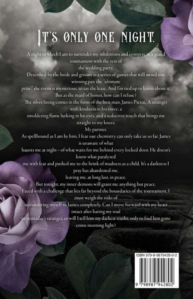 It's only one night. A night in which I am to surrender my inhibitions and compete in a grand tournament with the rest of the wedding party. Described by the bride and groom as a series of games that will award one winning pair the "ultimate prize," the event is mysterious, to say the least. And I'm tied up in knots about it. But as the maid of honor, how can I refuse? The silver lining comes in the form of the best man, James Pierce. A stranger with kindness in his voice, a smoldering flame lurking in his eyes, and a seductive touch that brings me straight to my knees. My partner. As spellbound as I am by him, I fear our chemistry can only take us so far. James is unaware of what haunts me at night-of what waits for me behind every locked door. He doesn't know what paralyzed me with fear and pushed me to the brink of madness as a child. It's a darkness I pray has abandoned me, leaving me, at long last, in peace. But tonight, my inner demons will grant me anything but peace. Faced with a challenge that lies far beyond the boundaries of the tournament, I must weigh the risks of surrendering myself to James completely. Can I move forward with my heart intact after baring my soul to yesterday's stranger, or will I tell him my darkest truths, only to find him gone come morning light?