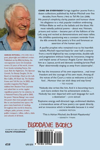 Come On Everybody brings together poems from a dozen collections published by Adrian Mitchell over five decades, from Poems (1964) to his final collection, Tell Me Lies (2008).