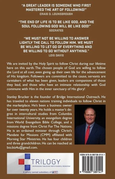 "A great leader is someone who first mastered the art of following!" Craig D. Lounsbrough "The end of life is to be like God, and the soul following God will be like God!" Socrates "We must not be willing to answer lightly the call to follow him. We must be willing to let go of everything and be willing to go without anything." Lois Davis We are invited by the Holy Spirit to follow Christ during our lifetime here on this earth. The chosen people of God are willing to follow the Lord at all cost, even giving up their own life for the advancement of His kingdom. Followers are committed to the cause, servants are caretakers of what has been given, leaders are companions of those they lead, and those who have an intimate relationship with God commune with Him in the inner sanctuary of His glory!