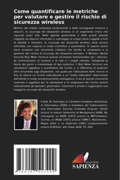 Nell'era del mobile computing onnipresente e delle conseguenti minacce e attacchi, la sicurezza dei dispositivi wireless è un argomento critico che riguarda quasi tutti. Dalle agenzie governative e dalle grandi aziende soggette ad attacchi informatici e spionaggio ai singoli utenti soggetti a furti di identità e finanziari, la sicurezza dei dispositivi wireless deve essere affrontata con urgenza in modo scientifico e quantitativo. In questo lavoro viene proposto uno strumento software che facilita la valutazione e la gestione del rischio di sicurezza dei dispositivi wireless. Il Wireless Device Security Risk Meter fornisce questo strumento fondamentale per i decisori, gli amministratori di sistema e di rete e i singoli individui. Utilizzando la teoria dei giochi e metodologie di tipo statistico, il Risk Meter fornisce una valutazione oggettiva e quantitativa del rischio e, a differenza di qualsiasi altro strumento oggi disponibile, una guida per l'allocazione delle risorse al fine di ridurre un rischio indesiderato a un "livello tollerabile" determinato dall'utente in modo economicamente vantaggioso. L'uso di questo strumento razionale e oggettivo per la valutazione e la mitigazione del rischio aiuterà notevolmente gli operatori governativi, industriali e privati a raggiungere una maggiore sicurezza dei dispositivi wireless.