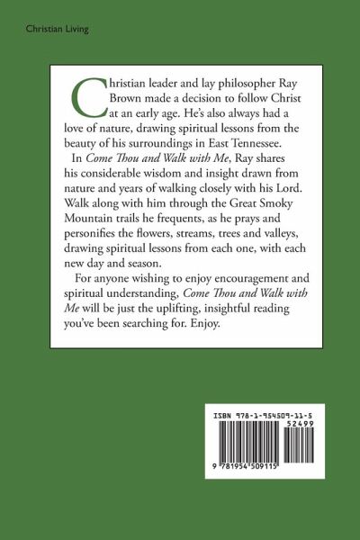 Christian leader and lay philosopher Ray Brown made a decision to follow Christ at an early age. He's also always had a love of nature, drawing spiritual lessons from the beauty of his surroundings in East Tennessee. In Come Thou and Walk with Me, Ray shares his considerable wisdom and insight drawn from nature and years of walking closely with his Lord. Walk along with him through the Great Smoky Mountain trails he frequents, as he prays and personifies the flowers, streams, trees and valleys, drawing spiritual lessons from each one, with each new day and season. For anyone wishing to enjoy encouragement and spiritual understanding, Come Thou and Walk with Me will be just the uplifting, insightful reading you've been searching for. Enjoy.