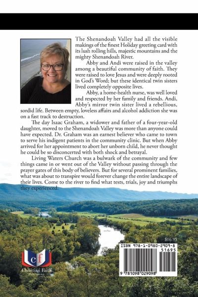 The Shenandoah Valley had all the visible makings of the finest Holiday greeting card with its lush rolling hills, majestic mountains and the mighty Shenandoah River. Abby and Andi were raised in the valley among a beautiful community of faith. They were raised to love Jesus and were deeply rooted in God's Word; but these identical twin sisters lived completely opposite lives. Abby, a home-health nurse, was well loved and respected by her family and friends. Andi, Abby's mirror twin sister lived a rebellious, sordid life. Between empty, loveless affairs and alcohol addiction she was on a fast track to destruction. The day Isaac Graham, a widower and father of a four-year-old daughter, moved to the Shenandoah Valley was more than anyone could have expected. Dr. Graham was an earnest believer who came to town to serve his indigent patients in the community clinic. But when Abby arrived for her appointment to abort her unborn child, he never thought he could be so disconcerted with both shock and betrayal. Living Waters Church was a bulwark of the community and few things came in or went out of the Valley without passing through the prayer gates of this body of believers. But for several prominent families, what was about to transpire would forever change the entire landscape of their lives. Come to the river to find what tests, trials, joy and triumphs they experienced.