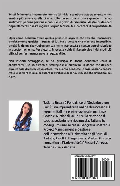 Tu sei innamorato, mentre lei inizia a cambiare atteggiamento e improvvisamente, ti dice che ti vuole solo come un amico. Mentre tu desideri e pensi a questa donna, lei potrebbe allontanarsi e metterti nella zona amicizia. Fai l'amico, ma segretamente speri che tra voi possa funzionare. Ti piace la sua compagnia, ma speri in una possibilità che possa trasformarsi in qualcosa di più. La cosa peggiore è che questa situazione ti impedisce di conoscere altre donne, perché non vuoi mettere a rischio le tue possibilità con lei. Ogni volta che uscite insieme pensi che potrebbe essere il momento giusto per farla innamorare. Speri che un giorno lei ti veda come più di un amico e capisca che quello giusto sei sempre stato tu. Ma se vuoi uscire dal ruolo dell'amico, la cosa migliore è agire diversamente. Anche se lei sta perdendo interesse per te e ti vuole solo come un amico, sii sereno e non perdere la motivazione, perché non hai perso questa donna: c'è sempre un modo per farla innamorare! Sei così felice di aver trovato questa donna che le dai tante attenzioni. E per lei diventa naturale comportarsi come un'amica, visto che non deve fare alcuno sforzo per mantenere il tuo interesse. In questo caso lei non percepisce la tua qualità e non rappresenti per lei una sfida. Ci sono cose che puoi fare per aumentare la possibilità che la donna che ti vuole solo come un amico inizi a innamorarsi di te. Quando non conosci le tecniche giuste, è difficile far innamorare una ragazza che ti vede solo come un amico. Perché potresti avere un atteggiamento sbagliato che la farà allontanare. Non lasciarti scoraggiare se, dall'inizio, la donna che desideri ti considera solo un amico. Applicando i principi esposti in questo libro, scoprirai con sorpresa che anche una situazione in cui lei ti considera solo un amico può cambiare e portarti al risultato desiderato. Ti senti intrappolato nella famosa zona amicizia? Hai un'amica speciale, ma lei ti vede solo come un amico e non riesci a farle cambiare idea? Ma cosa succederebbe se potessi, con le giuste strategie, farla innamorare di te? Questo libro è la guida definitiva che ti insegnerà come trasformare un'amicizia in un legame amoroso profondo e sincero. Il percorso ti guida con consigli e strategie per uscire dal ruolo di amico e diventare l'uomo che lei desidera. In questo libro ti offro una serie di tecniche e suggerimenti che ti aiuteranno a farla innamorare, senza rimanere bloccato nella zona amico. Ecco cosa troverai nel libro: - Quando lei ti vede solo come un amico, ecco cosa devi sapere - Perché lei ti vuole solo come un amico - Come trasformare un'amicizia in qualcosa di più - Come avvicinare una donna che sta perdendo interesse - Cosa fare quando una donna non è molto interessata a te - Perché una ragazza non ti richiama o non ti risponde? - Come e quando chiamare o scrivere se lei non risponde - Cosa fare quando una donna non richiama o non ti risponde - Come creare interesse e desiderio in una donna - Come far innamorare una donna che ti vuole come un amico - L'arte di farsi desiderare: quando l'assenza crea attrazione - Il potere dell'indifferenza: smetti di inseguire e inizia ad attrarre - Come essere imprevedibile con una donna per farla innamorare - Come essere misterioso per attrarre una donna - Cosa fa un uomo di alto valore per creare attrazione in una donna - Come fare in modo che una donna ti veda come l'unico uomo per lei - Come non far allontanare una donna - Come creare intimità e legami emotivi con una donna - Lei non vuole una relazione: ecco gli errori che dovresti evitare - Come non finire in zona amicizia - Come diventare la sua ossessione - Cosa fare se una donna inizia a darti per scontato - Come comportarti quando una