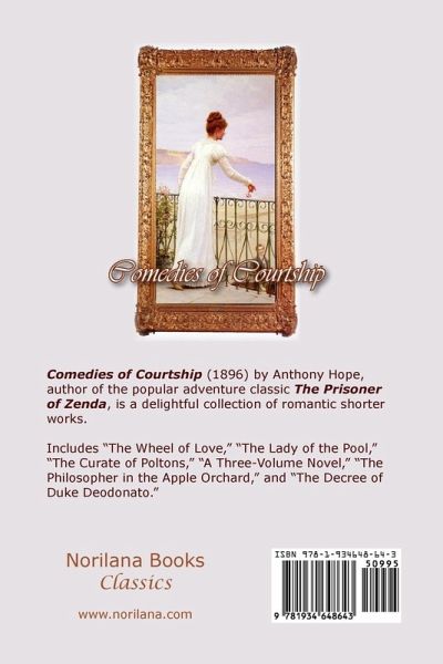 COMEDIES OF COURTSHIP (1896) by Anthony Hope, author of the popular adventure classic The Prisoner of Zenda, is a delightful collection of romantic shorter works. Includes "The Wheel of Love," "The Lady of the Pool," "The Curate of Poltons," "A Three-Volume Novel," "The Philosopher in the Apple Orchard," and "The Decree of Duke Deodonato."