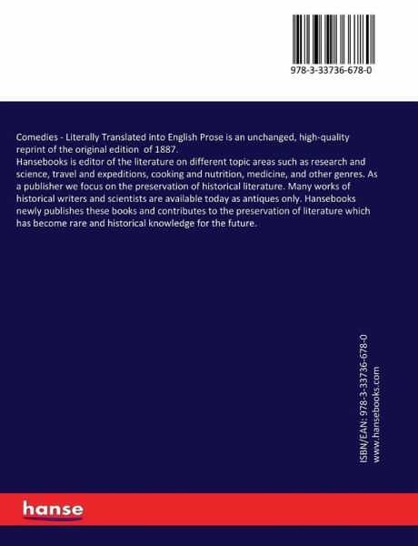 Comedies - Literally Translated into English Prose is an unchanged, high-quality reprint of the original edition of 1887.