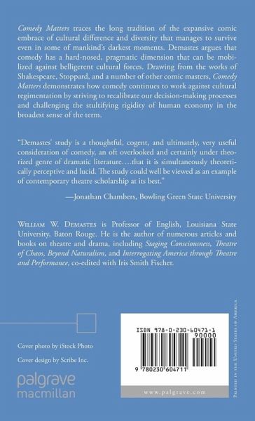 Comedy Matters traces the long tradition of the expansive comic embrace of cultural difference and diversity that manages to survive even in some of mankind s darkest moments. Demastes argues that comedy has a hard-nosed, pragmatic dimension that can be mobilized against belligerent cultural forces. Drawing from the works of Shakespeare, Stoppard, and a number of other comic masters, Comedy Matters demonstrates how comedy continues to work against cultural regimentation by striving to re-calibrate our decision-making processes and challenging the stultifying rigidity of human economy in the broadest sense of the term.