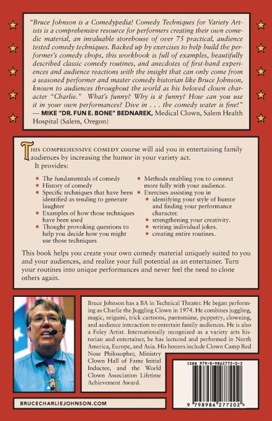 This comprehensive comedy course will aid you in entertaining family audiences by increasing the humor in your variety act. ¿¿¿¿¿¿¿It provides:The fundamentals of comedy History of comedy Specific techniques that have been identified as tending to generate laughter Examples of how those techniques have been used Thought-provoking questions to help you decide how you might use those techniques Methods enabling you to connect more fully with your audience. And offers exercises assisting you in:identifying your style of humor and finding your performance character. strengthening your creativity. writing individual jokes. creating entire routines. This book helps you create your own comedy material uniquely suited to you and your audiences, and realize your full potential as an entertainer. Turn your routines into unique performances and never feel the need to clone others again. (This is Volume 4 in the series: Creativity for Entertainers. The volumes can be read in any order)
