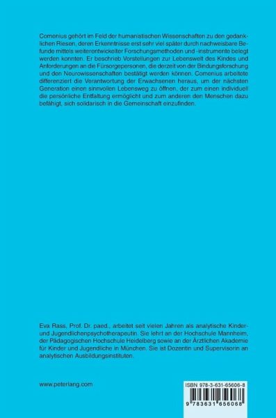Comenius gehört im Feld der humanistischen Wissenschaften zu den gedanklichen Riesen, deren Erkenntnisse erst sehr viel später durch nachweisbare Befunde mittels weiterentwickelter Forschungsmethoden und -instrumente belegt werden konnten. Er beschrieb Vorstellungen zur Lebenswelt des Kindes und Anforderungen an die Fürsorgepersonen, die derzeit von der Bindungsforschung und den Neurowissenschaften bestätigt werden können. Comenius arbeitete differenziert die Verantwortung der Erwachsenen heraus, um der nächsten Generation einen sinnvollen Lebensweg zu öffnen, der zum einen individuell die persönliche Entfaltung ermöglicht und zum anderen den Menschen dazu befähigt, sich solidarisch in die Gemeinschaft einzufinden.