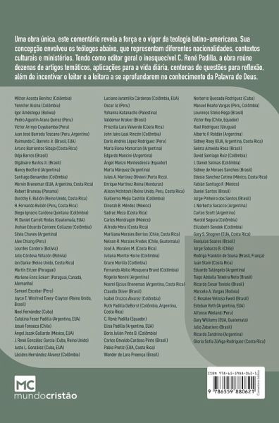 Uma obra única, este primeiro volume do Comentário Bíblico Latino-americano revela a força e o vigor da teologia latino-americana, cuja concepção envolveu teólogos de diferentes nacionalidades, contextos culturais e ministérios. Tendo como editor-geral o inesquecível C. René Padilla, a obra reúne dezenas de artigos temáticos, aplicações para a vida diária, centenas de questões para reflexão, além de incentivar o leitor e a leitora a se aprofundarem no conhecimento da Palavra de Deus.