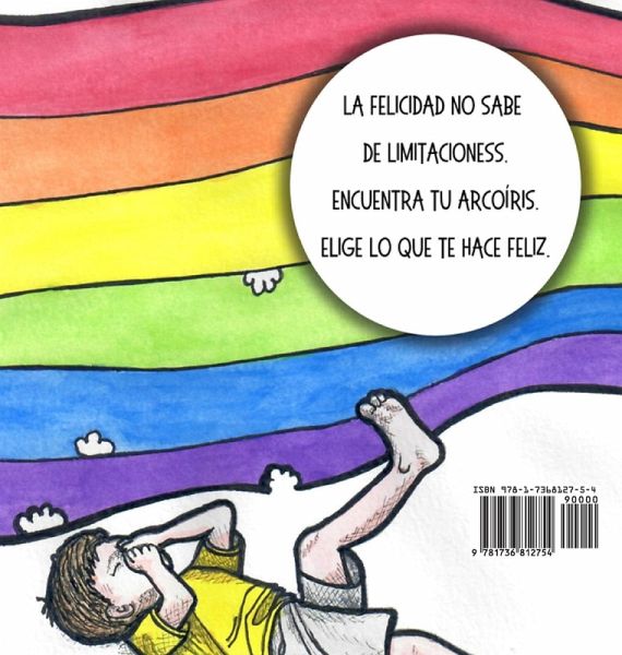 ¿ ¡Éxito de ventas! ¿ Encuentra tu arcoíris. Elige lo que te hace feliz. "No podia..." "No lo conseguí..." "Lo intenté..." En este libro dinámico, ilustrado con acuarelas, un niño que está enfermo y tiene un tubo de traqueostomía, no puede jugar como lo hacen otros niños y niñas. No puede silbar, y aunque intente comer tarta, duele demasiado y el tubo le estorba. Después de una tormenta, le viene a ver un arcoíris. Lame los colores de uno en uno, y luego los come a grandes y deliciosos mordiscos. Se llena de felicidad. Aunque no podemos o no conseguimos hacer algo, o intentamos y duele, es posible encontrar la felicidad dentro de uno mismo, a pesar de nuestras limitaciones. ¿Cuál es tu arcoíris?
