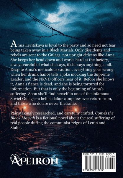 Anna Levitskaya is loyal to the party and so need not fear being taken away in a Black Mariah. Only dissidents and rebels are sent to the Gulags, not upright citizens like Anna. She keeps her head down and works hard at the factory, always careful what she says, if she says anything at all. Despite Anna's meticulous caution, everything goes wrong when her drunk fiancé tells a joke mocking the Supreme Leader, and the NKVD officers hear of it. Before she knows it, Anna's fiancé is dead, and she is being tortured for information. But that is only the beginning of Anna's suffering. Soon she'll find herself in one of the infamous Soviet Gulags-a hellish labor camp few ever return from, and those who do are never the same. Painstakingly researched, and carefully crafted, Comes the Black Mariah is a fictional novel about the real suffering of real people during the communist reigns of Lenin and Stalin.