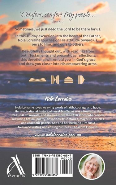 Comfort, comfort My people. Sometimes, we just need the Lord to be there for us. In this 40-day excursion into the heart of the Father, Nola Lorraine touches on His attitude toward us, ours to Him, and ours to others. Beautifully thought out, with readings from both Testaments and present-day reflections, this devotional will enfold you in God's grace and draw you closer into His empowering arms.