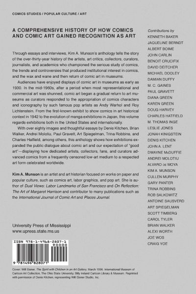 Contributions by Kenneth Baker, Jaqueline Berndt, Albert Boime, John Carlin, Benoit Crucifix, David Deitcher, Michael Dooley, Damian Duffy, M. C. Gaines, Paul Gravett, Diana Green, Karen Green, Doug Harvey, Charles Hatfield, M. Thomas Inge, Leslie Jones, Jonah Kinigstein, Denis Kitchen, John A. Lent, Dwayne McDuffie, Andrei Molotiu, Alvaro de Moya, Kim A. Munson, Cullen Murphy, Gary Panter, Trina Robbins, Rob Salkowitz, Antoine Sausverd, Art Spiegelman, Scott Timberg, Carol Tyler, Brian Walker, Alexi Worth, Joe Wos, and Craig Yoe Through essays and interviews, Kim A. Munson's anthology tells the story of the over-thirty-year history of the artists, art critics, collectors, curators, journalists, and academics who championed the serious study of comics, the trends and controversies that produced institutional interest in comics, and the wax and wane and then return of comic art in museums. Audiences have enjoyed displays of comic art in museums as early as 1930. In the mid-1960s, after a period when most representational and commercial art was shunned, comic art began a gradual return to art museums as curators responded to the appropriation of comics characters and iconography by such famous pop artists as Andy Warhol and Roy Lichtenstein. From the first-known exhibit to show comics in art historical context in 1942 to the evolution of manga exhibitions in Japan, this volume regards exhibitions both in the United States and internationally. With over eighty images and thoughtful essays by Denis Kitchen, Brian Walker, Andrei Molotiu, Paul Gravett, Art Spiegelman, Trina Robbins, and Charles Hatfield, among others, this anthology shows how exhibitions expanded the public dialogue about comic art and our expectation of "good art"--displaying how dedicated artists, collectors, fans, and curators advanced comics from a frequently censored low-art medium to a respected art form celebrated worldwide.