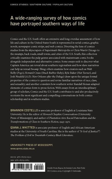 A wide-ranging survey of how comics have portrayed southern ways of life Contributions from Tim Caron, Brannon Costello, Brian Cremins, Conseula Francis, Anthony Dyer Hoefer, M. Thomas Inge, Nicolas Labarre, Alison Mandaville, Gary Richards, Joseph Michael Sommers, Christopher Whitby, and Qiana J. Whitted Comics and the U.S. South offers a wide-ranging and long overdue assessment of how life and culture in the United States South is represented in serial comics, graphic novels, newspaper comic strips, and webcomics. Diverting the lens of comics studies from the skyscrapers of Superman's Metropolis or Chris Ware's Chicago to the swamps, back roads, small towns, and cities of the U.S. South, this collection critically examines the pulp genres associated with mainstream comic books alongside independent and alternative comics. Some essays seek to discover what Captain America can reveal about southern regionalism and how slave narratives can help us reread Swamp Thing; others examine how creators such as Walt Kelly (Pogo), Howard Cruse (Stuck Rubber Baby), Kyle Baker (Nat Turner), and Josh Neufeld (A.D.: New Orleans after the Deluge) draw upon the unique formal properties of the comics to question and revise familiar narratives of race, class, and sexuality; and another considers how southern writer Randall Kenan adapted elements of comics form to prose fiction. With essays from an interdisciplinary group of scholars, Comics and the U.S. South contributes to and also productively reorients the most significant and compelling conversations in both comics scholarship and in southern studies. Brannon Costello, Baton Rouge, Louisiana, is associate professor of English at Louisiana State University and is the editor of Howard Chaykin: Conversations (University Press of Mississippi). Qiana J. Whitted, Columbia, South Carolina, is associate professor of English and African American studies at the University of South Carolina. She is the author of "A God of Justice?": The Problem of Evil in Twentieth-Century Black Literature.
