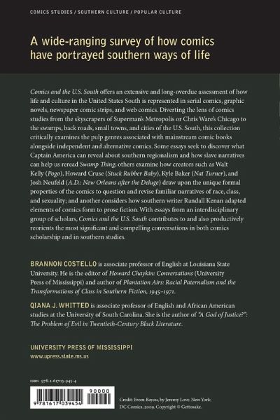 A wide-ranging survey of how comics have portrayed southern ways of life Contributions from Tim Caron, Brannon Costello, Brian Cremins, Conseula Francis, Anthony Dyer Hoefer, M. Thomas Inge, Nicolas Labarre, Alison Mandaville, Gary Richards, Joseph Michael Sommers, Christopher Whitby, and Qiana J. Whitted Comics and the U.S. South offers a wide-ranging and long overdue assessment of how life and culture in the United States South is represented in serial comics, graphic novels, newspaper comic strips, and webcomics. Diverting the lens of comics studies from the skyscrapers of Superman's Metropolis or Chris Ware's Chicago to the swamps, back roads, small towns, and cities of the U.S. South, this collection critically examines the pulp genres associated with mainstream comic books alongside independent and alternative comics. Some essays seek to discover what Captain America can reveal about southern regionalism and how slave narratives can help us reread Swamp Thing; others examine how creators such as Walt Kelly (Pogo), Howard Cruse (Stuck Rubber Baby), Kyle Baker (Nat Turner), and Josh Neufeld (A.D.: New Orleans after the Deluge) draw upon the unique formal properties of the comics to question and revise familiar narratives of race, class, and sexuality; and another considers how southern writer Randall Kenan adapted elements of comics form to prose fiction. With essays from an interdisciplinary group of scholars, Comics and the U.S. South contributes to and also productively reorients the most significant and compelling conversations in both comics scholarship and in southern studies. Brannon Costello, Baton Rouge, Louisiana, is associate professor of English at Louisiana State University and is the editor of Howard Chaykin: Conversations (University Press of Mississippi). Qiana J. Whitted, Columbia, South Carolina, is associate professor of English and African American studies at the University of South Carolina. She is the author of "A God of Justice?": The Problem of Evil in Twentieth-Century Black Literature.