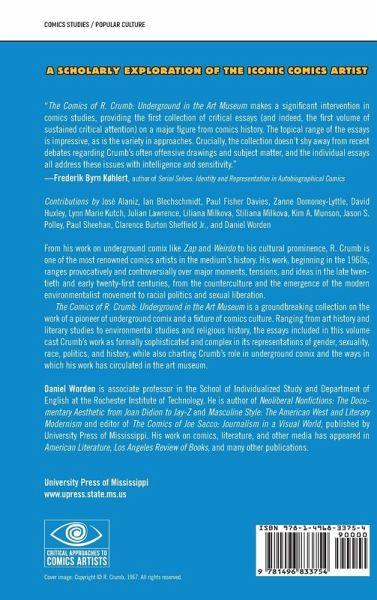 Contributions by José Alaniz, Ian Blechschmidt, Paul Fisher Davies, Zanne Domoney-Lyttle, David Huxley, Lynn Marie Kutch, Julian Lawrence, Liliana Milkova, Stiliana Milkova, Kim A. Munson, Jason S. Polley, Paul Sheehan, Clarence Burton Sheffield Jr., and Daniel Worden From his work on underground comix like Zap and Weirdo, to his cultural prominence, R. Crumb is one of the most renowned comics artists in the medium's history. His work, beginning in the 1960s, ranges provocatively and controversially over major moments, tensions, and ideas in the late twentieth and early twenty-first centuries, from the counterculture and the emergence of the modern environmentalist movement, to racial politics and sexual liberation. While Crumb's early work refined the parodic, over-the-top, and sexually explicit styles we associate with underground comix, he also pioneered the comics memoir, through his own autobiographical and confessional comics, as well as in his collaborations. More recently, Crumb has turned to long-form, book-length works, such as his acclaimed Book of Genesis and Kafka. Over the long arc of his career, Crumb has shaped the conventions of underground and alternative comics, autobiographical comics, and the "graphic novel." And, through his involvement in music, animation, and documentary film projects, Crumb is a widely recognized persona, an artist who has defined the vocation of the cartoonist in a widely influential way. The Comics of R. Crumb: Underground in the Art Museum is a groundbreaking collection on the work of a pioneer of underground comix and a fixture of comics culture. Ranging from art history and literary studies, to environmental studies and religious history, the essays included in this volume cast Crumb's work as formally sophisticated and complex in its representations of gender, sexuality, race, politics, and history, while also charting Crumb's role in underground comix and the ways in which his work has circulated in the art museum.