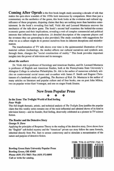 "Coming After Oprah "is the first book-length study assessing a decade of talk that makes the quiz-show scandals of the 1950s look innocuous by comparison. More than just a commentary on the aesthetics of the genre, this book looks at the evolution and cultural significance of these programs, disputing claims that they are nothing more than harmless entertainment.