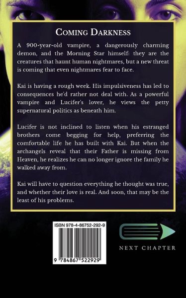 A 900-year-old vampire, a dangerously charming demon, and the Morning Star himself: they are the creatures that haunt human nightmares, but a new threat is coming that even nightmares fear to face. Kai is having a rough week. His impulsiveness has led to consequences he'd rather not deal with. As a powerful vampire and Lucifer's lover, he views the petty supernatural politics as beneath him. Lucifer is not inclined to listen when his estranged brothers come begging for help, preferring the comfortable life he has built with Kai. But when the archangels reveal that their Father is missing from Heaven, he realizes he can no longer ignore the family he walked away from. Kai will have to question everything he thought was true, and whether their love is real. And soon, that may be the least of his problems.