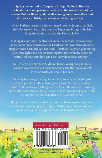 Spring has arrived in Tuppenny Bridge. Daffodils line the cobbled streets and perfume the air. But for Bethany Marshall, coming home unearths a past she has spent thirty years desperately trying to forget... When Bethany learns of her estranged brother Joseph's death, she reluctantly returns to her childhood home. As she makes her way over the River Skimmer, she looks out at landscapes she hasn't seen for over three decades. Happier times with her precious sibling resurface. But now, with him gone, so is any hope of an apology... To Bethany's dismay, her childhood home, Whispering Willows, has been converted into a horse sanctuary, and the house, as well as the animals, are now in her care. Bethany knows she must have one goal in sight - sell the property before the past catches up with her. However, the house and stables are falling apart, and then there's Clive Browning, her brother's best friend. His presence begins to stir up emotions in Bethany that she's never felt before. But just when Bethany starts to accept that there may be hope in Tuppenny Bridge, a shattering revelation comes to light, making Bethany question all she thought was true... A beautifully emotional story set in the gorgeous Yorkshire Dales, where the tender shoots of love, hope and forgiveness are beginning to burst into life. Fans of Heidi Swain, Cathy Bramley and Milly Johnson will adore this.