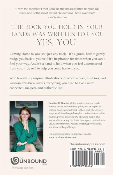 Coming Home to You isn't just any book - it's a guide, here to gently nudge you back to yourself. It's inspiration for times when you can't find your way. And it's a hand to hold when you feel disconnected from your true self, to help you come home to you. With beautifully inspired illustrations, practical advice, exercises, and wisdom, this book covers everything you need to live a more connected, magical, and authentic life. "From the moment I met Caroline the magic started happening, she is one of the most incredible humans I have ever met." Katie Marshall "I sometimes joke Caroline must be controlling the Universe, the results are remarkable." Dave Barnett "A real life earth angel, I will forever be grateful for what you unlocked in me" Kate Skivington "I will be forever grateful to you for giving me the tools to become the person I am meant to be. I am the most joyful I have been since I was a child and I am excited for the future. This email doesn't even begin to capture the difference you have made to my life but from the bottom of my heart THANK YOU" Tracy About the Author: Caroline Britton is a global speaker, teacher, coach, mentor, healer, and intuitive guide, and an expert in helping people connect back to their soul. She delivers her powerful teachings through a combination of online courses, private coaching and speaking events and works with a variety of clients from sports professionals, CEOs, entrepreneurs, healers, working professionals, parents and those in the public eye. ¿