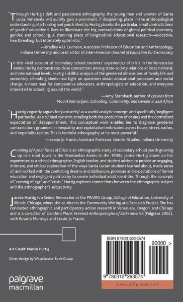 Coming of Age in Times of Crisis is an anthropological study of the intersecting roles of gender and schooling in the lives of rural Venezuelan youth as they make the transition to adulthood during times of national political and economic crisis. Strongly grounded in local detail while speaking to larger comparative issues and the crises that surround globalization, the study enables us to see how gender roles and social class are reproduced in a culture experiencing profound upheaval, and to see how rural Venezuelans have managed to reproduce and change their culture in these circumstances. This book is based on two-and-a-half years of ethnographic field research Hurtig conducted in the Andean region of Venezuela between 1991 and 1993, and again briefly in 1996.