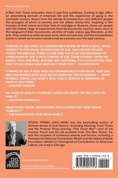 "Inspired...the language spoken here is pure Terkel."--"The New York Times Book Review" A New York Times bestseller when it was first published in 1995, "Coming of Age" presents an astonishing portrait of American life and the experience of aging in the twentieth century, drawn from the stories of seventy-four very different people, the youngest of whom is seventy and the oldest ninety-nine. Inspiring in the honesty of their voices and their lack of nostalgia or illusions, these are people with the widest range of experiences from all around the country; many were at the vanguard of their movements, whether of trade unions, gay liberation, or the arts. They remind us what we once were, what we have lost, and the extraordinary extent to which we've been transformed as a society over the last hundred odd years.