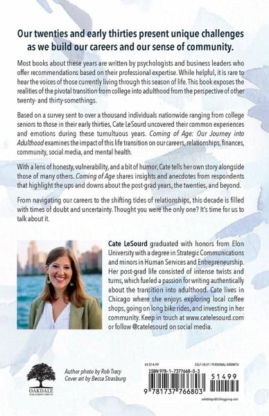 From a survey sent to a thousand twenty-somethings nationwide, Cate LeSourd uncovered common experiences of the life transition from college into adulthood. This book shares insights and stories about post-grad life, the twenties, and beyond.