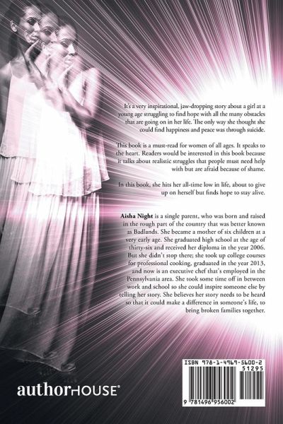 This book is an inspirational, jaw-dropping story about a girl struggling at a young age to find hope despite the many obstacles in her life. At times, she thought the only way she could find peace was through suicide. This book is a must-read for women of all ages. It speaks to the heart. The author talks about realistic struggles that people need help with but are often afraid to seek because of shame. This is the story of a woman who hits her all-time low in life and is about to give up on herself, but finds hope to stay alive.