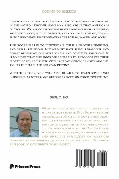 With an education which consists of four college degrees, Paul Ng has become an excellent analyst in identifying problems and offering solutions in engineering and in social issues. As a foreign-born citizen who has been in the United States for more than 57 years, he offers a fresh and objective perspective on America's problems. After working 30 years as an engineer, Ng wrote this book to contribute to humanity.