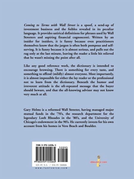 "Coming to terms with Wall Street is a spoof, a send-up of investment business and the foibles revealed in its peculiar language. It provides satirical definitions for phrases used by Wall Streeters and aspiring financial cognoscenti"--Back cover.