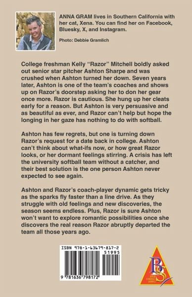 College freshman Kelly "Razor" Mitchell boldly asked out senior star pitcher Ashton Sharpe and was crushed when Ashton turned her down. Seven years later, Ashton is one of the team's coaches and shows up on Razor's doorstep asking her to don her gear once more. Razor is cautious. She hung up her cleats early for a reason. But Ashton is very persuasive and as beautiful as ever, and Razor can't help but hope the longing in her gaze has nothing to do with softball. Ashton has few regrets, but one is turning down Razor's request for a date back in college. Ashton can't think about what-ifs now, or how great Razor looks, or her dormant feelings stirring. A crisis has left the university softball team without a catcher, and their best solution is the one person Ashton never expected to see again. Ashton and Razor's coach-player dynamic gets tricky as the sparks fly faster than a line drive. As they struggle with old feelings and new discoveries, the season seems endless. Plus, Razor is sure Ashton won't want to explore romantic possibilities once she discovers the real reason Razor abruptly departed the team all those years ago.
