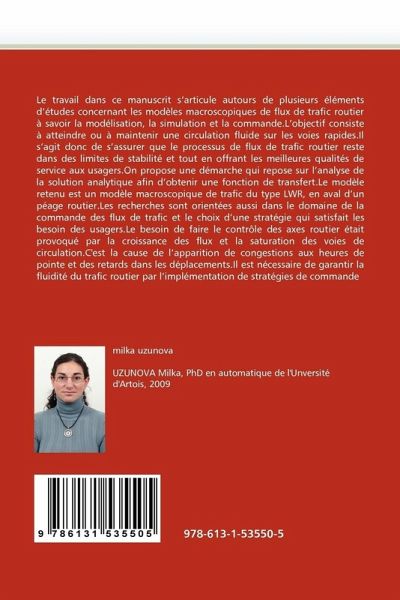 Le travail dans ce manuscrit s articule autours de plusieurs éléments d études concernant les modèles macroscopiques de flux de trafic routier à savoir la modélisation, la simulation et la commande.L objectif consiste à atteindre ou à maintenir une circulation fluide sur les voies rapides.Il s agit donc de s assurer que le processus de flux de trafic routier reste dans des limites de stabilité et tout en offrant les meilleures qualités de service aux usagers.On propose une démarche qui repose sur l analyse de la solution analytique afin d obtenir une fonction de transfert.Le modèle retenu est un modèle macroscopique de trafic du type LWR, en aval d un péage routier.Les recherches sont orientées aussi dans le domaine de la commande des flux de trafic et le choix d une stratégie qui satisfait les besoin des usagers.Le besoin de faire le contrôle des axes routier était provoqué par la croissance des flux et la saturation des voies de circulation.C'est la cause de l apparition de congestions aux heures de pointe et des retards dans les déplacements.Il est nécessaire de garantir la fluidité du trafic routier par l implémentation de stratégies de commande