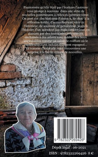 Passionnée qu'elle était par l'écriture l'auteure vous à nouveau dans une série de nouvelles postérieures à celles du premier tome. On part sur des histoires d'oiseaux, de chat à la réflexion fertile, d'accouchement vécu de l'intérieur, de souvenirs de pensionnat, jusqu'à l'histoire d'un sumotori japonais cambrioleur, en passant par des écologistes précurseurs enchaînés à des arbres, sans oublier des lieux improbables comme un salon de coiffure où le capilliculteur est indubitablement espagnol. Et comme d'habitude vous découvrirez une surprise à la fin de ce recueil de nouvelles.