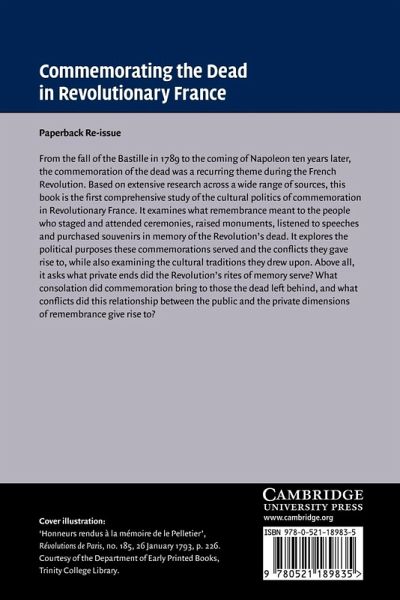 From the fall of the Bastille in 1789 to the coming of Napoleon ten years later, the commemoration of the dead was a recurring theme during the French Revolution. Based on extensive research across a wide range of sources, this book is the first comprehensive study of the cultural politics of commemoration in Revolutionary France. It examines what remembrance meant to the people who staged and attended ceremonies, raised monuments, listened to speeches and purchased souvenirs in memory of the Revolution's dead. It explores the political purposes these commemorations served and the conflicts they gave rise to while also examining the cultural traditions they drew upon. Above all, it asks what private ends did the Revolution's rites of memory serve? What consolation did commemoration bring to those the dead left behind, and what conflicts did this relationship between the public and the private dimensions of remembrance give rise to?