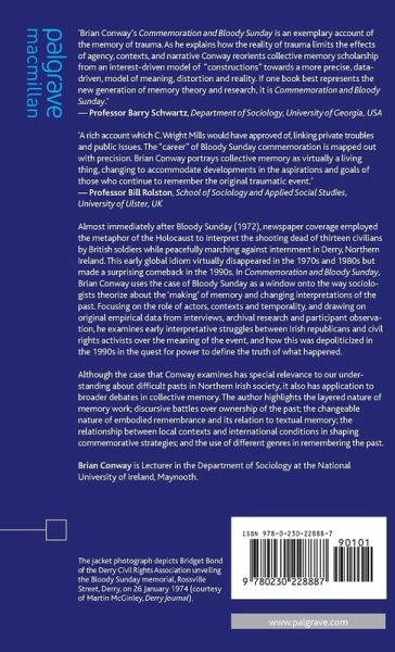 'A rich account which C. Wright Mills would have approved of, linking private troubles and public issues. The "career" of Bloody Sunday commemoration is mapped out with precision. Brian Conway portrays collective memory as virtually a living thing, changing to accommodate developments in the aspirations and goals of those who continue to remember the original traumatic event.' - Bill Rolston, School of Sociology, University of Ulster, UK