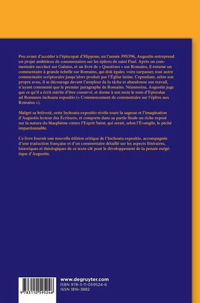 Malgré sa brièveté, cette Inchoata expositio révèle toute la sagesse et l'imagination d'Augustin lecteur des Écritures, et comporte dans sa partie finale un riche exposé sur la nature du blasphème contre l'Esprit Saint, qui serait, selon l'Évangile, le péché impardonnable.