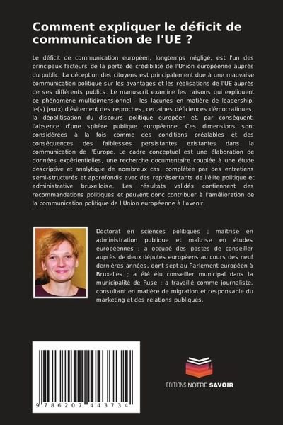 Le déficit de communication européen, longtemps négligé, est l'un des principaux facteurs de la perte de crédibilité de l'Union européenne auprès du public. La déception des citoyens est principalement due à une mauvaise communication politique sur les avantages et les réalisations de l'UE auprès de ses différents publics. Le manuscrit examine les raisons qui expliquent ce phénomène multidimensionnel - les lacunes en matière de leadership, le(s) jeu(x) d'évitement des reproches, certaines déficiences démocratiques, la dépolitisation du discours politique européen et, par conséquent, l'absence d'une sphère publique européenne. Ces dimensions sont considérées à la fois comme des conditions préalables et des conséquences des faiblesses persistantes existantes dans la communication de l'Europe. Le cadre conceptuel est une élaboration de données expérientielles, une recherche documentaire couplée à une étude descriptive et analytique de nombreux cas, complétée par des entretiens semi-structurés et approfondis avec des représentants de l'élite politique et administrative bruxelloise. Les résultats validés contiennent des recommandations politiques et peuvent donc contribuer à l'amélioration de la communication politique de l'Union européenne à l'avenir.
