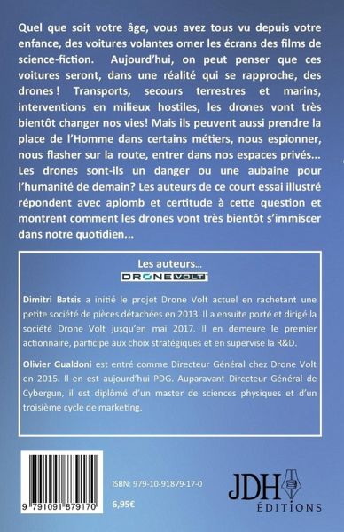 Transports, secours terrestres et marins, interventions en milieux hostiles : les drones vont très bientôt changer nos vies et prendre la place des voitures volantes qui meublent notre imaginaire dès que l'on pense au futur. Mais ils peuvent aussi évincer l'Homme dans certains métiers, nous espionner, nous flasher sur la route, entrer dans nos espaces privés... Les drones sont-ils un danger ou une aubaine pour l'humanité de demain? Les auteurs de ce court essai illustré répondent avec aplomb et certitude à cette question et montrent comment les drones vont très bientôt s'immiscer dans notre quotidien...